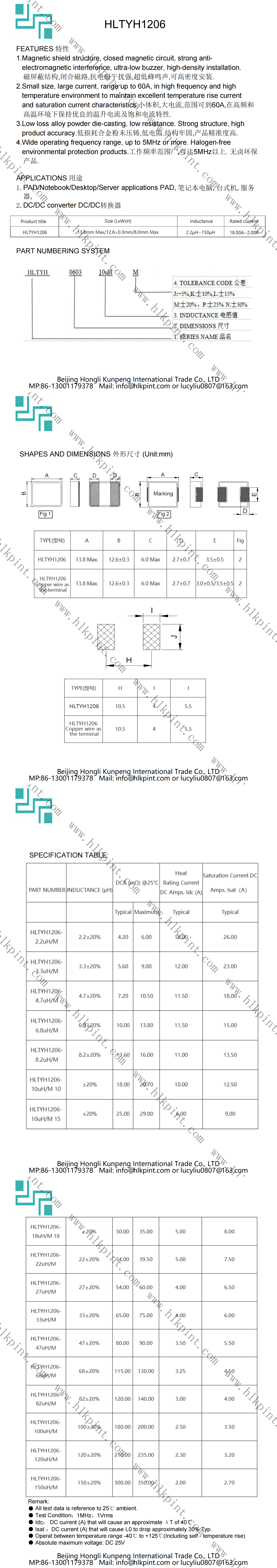 HLTYH1206-10uH/M 10 HLTYH1206-10uH/M 10 HL1206 13.8mm Max/12.6±0.3mm/6.0mm Max(LxWxH)