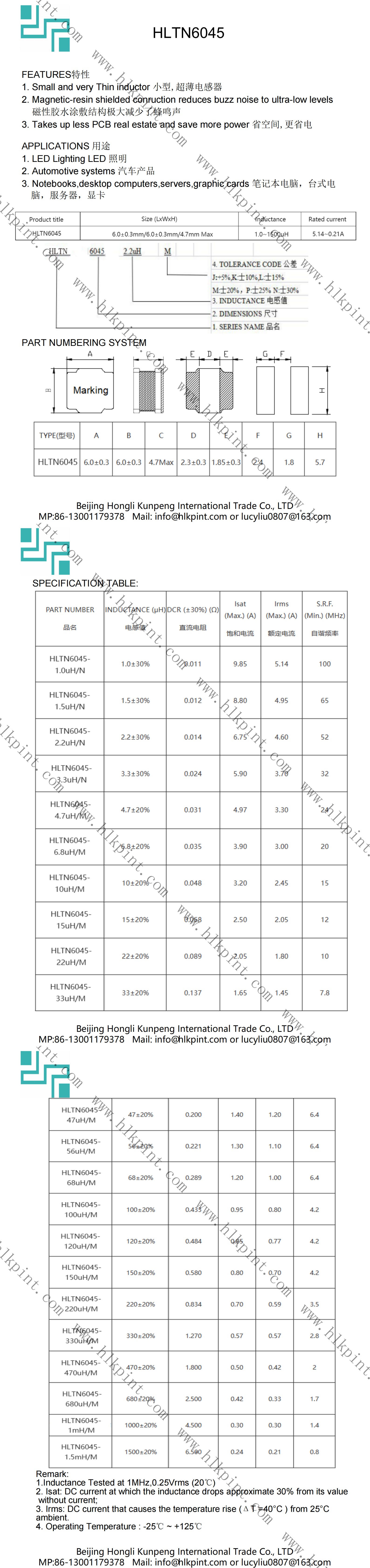 HLTN6045-330uH/M HLTN6045-330uH/M HL6045 6.0±0.3mm/6.0±0.3mm/4.7mm Max(LxWxH)