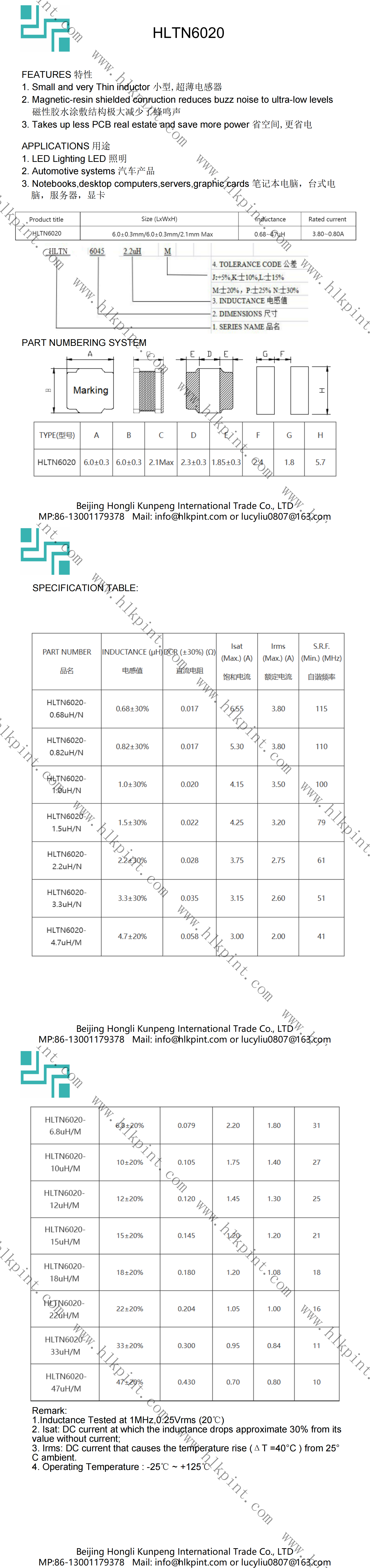 HLTN6020-47uH/M HLTN6020-47uH/M HL6020 6.0±0.3mm/6.0±0.3mm/2.1mm Max(LxWxH)