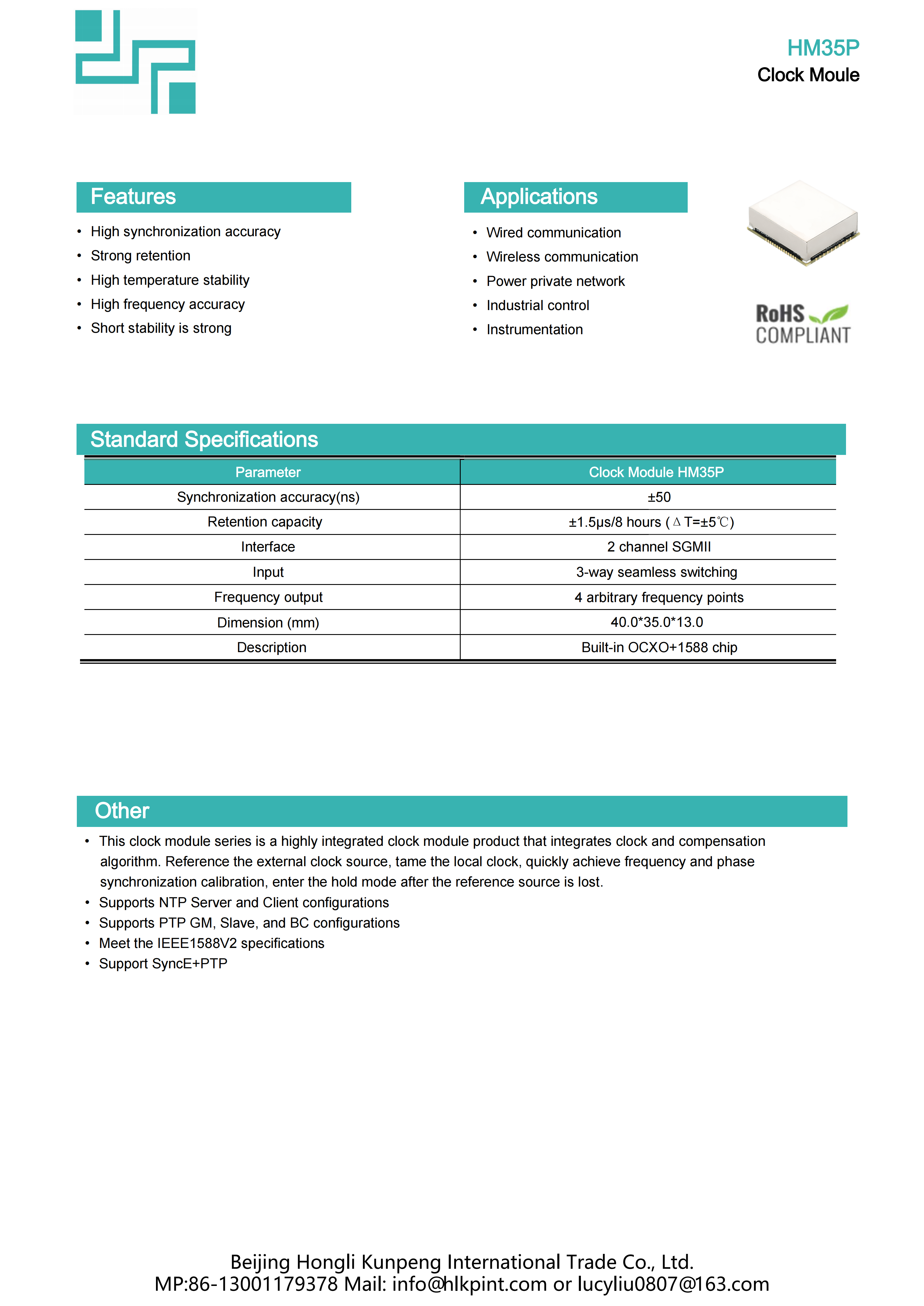 HM35P Highly integrated clock module crystal oscillator HM35P 40.0*35.0*13.0 mm