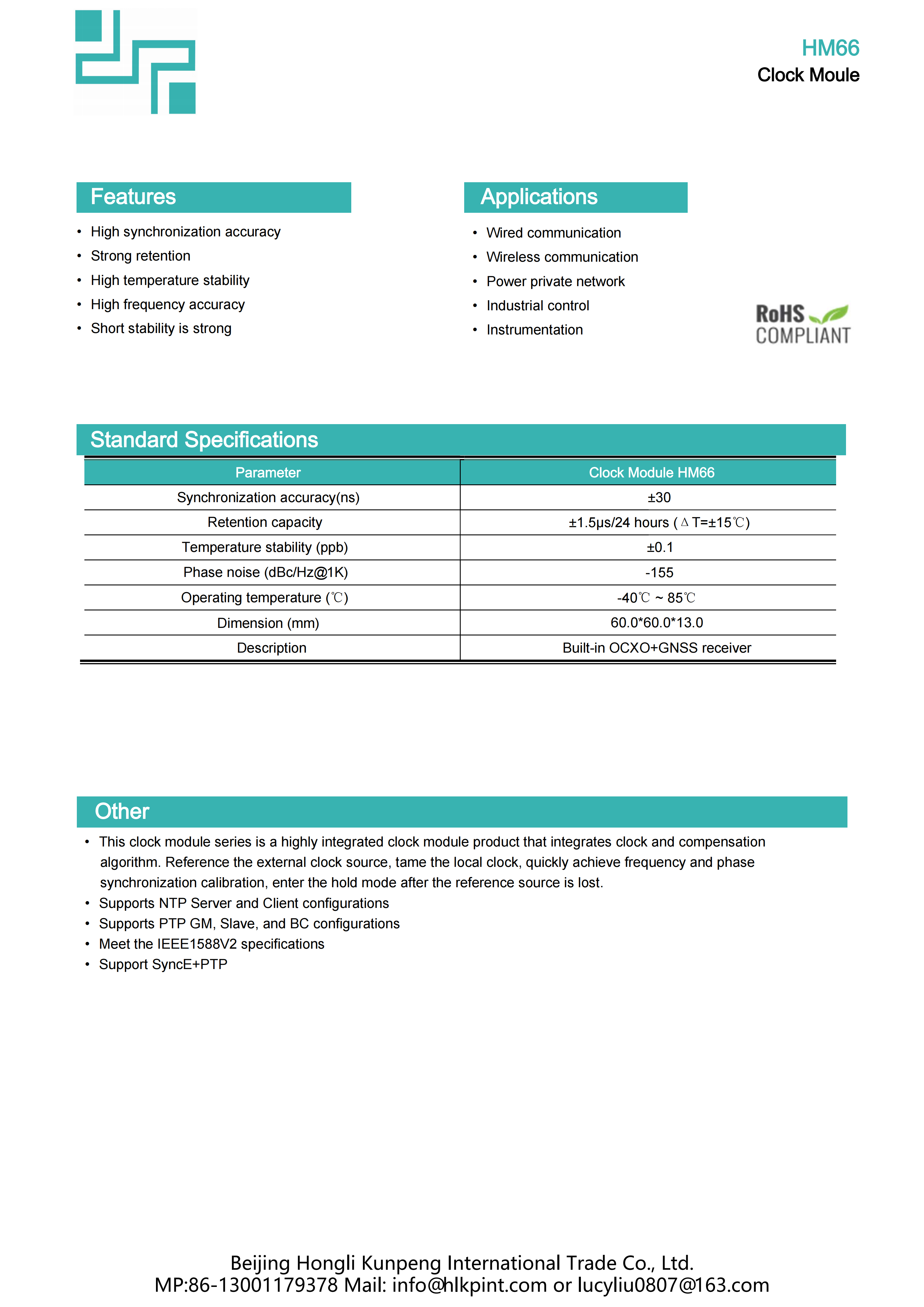 HM66 Highly integrated clock module crystal oscillator HM66 60.0*60.0*13.0 mm