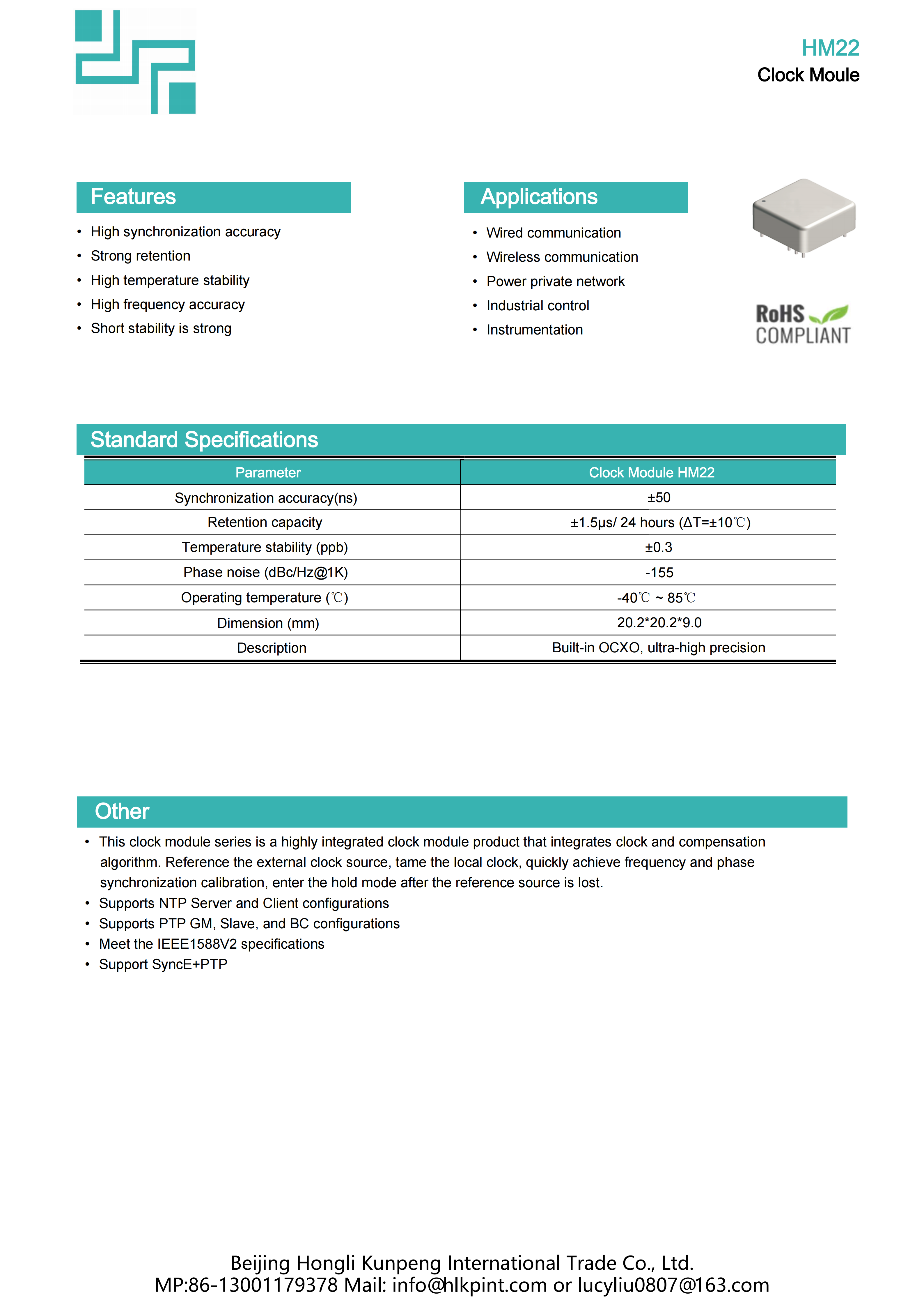 HM22 Highly integrated clock module crystal oscillator HM22 20.2*20.2*9.0 mm