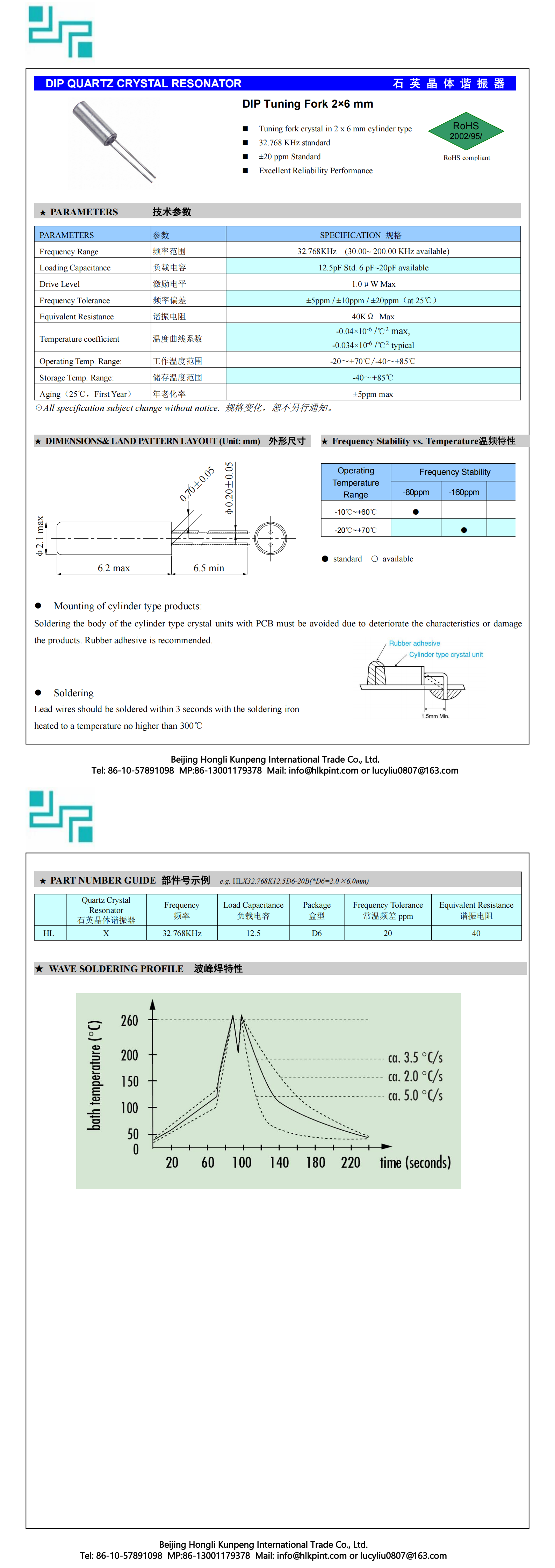 FM206 2 PIN FM206 L6.0×Φ2.0 32.768KHz