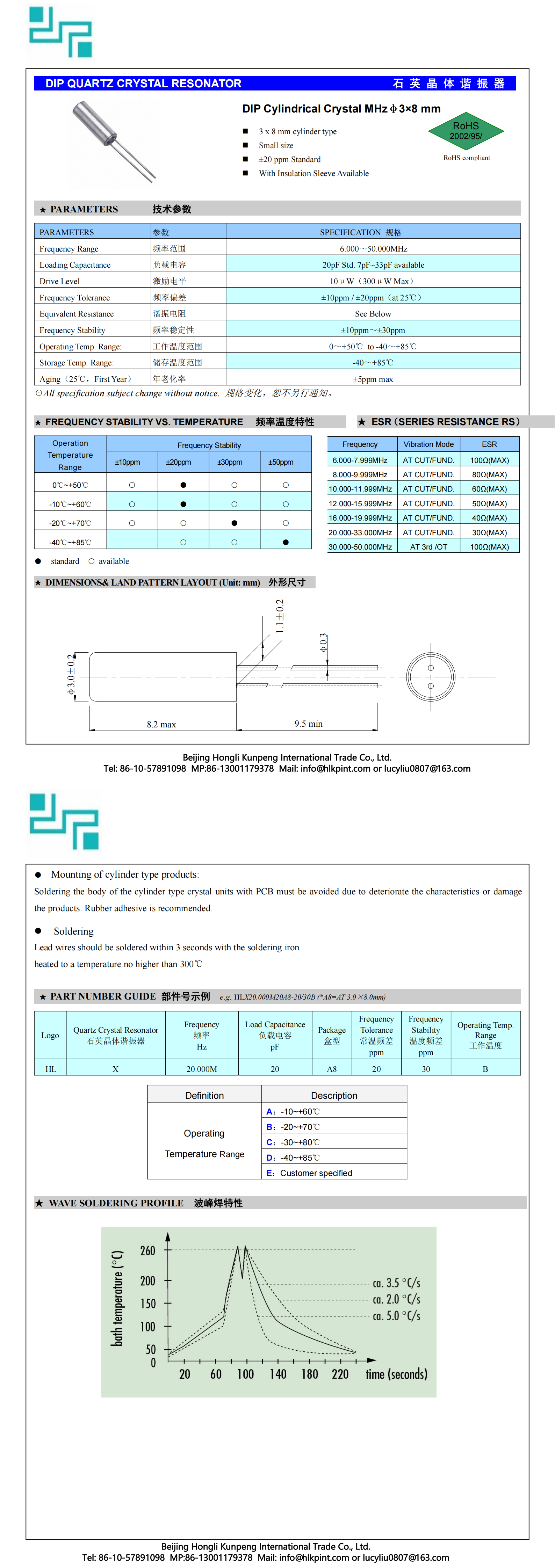 Quartz crystal resonator DIP series 石英晶体谐振器