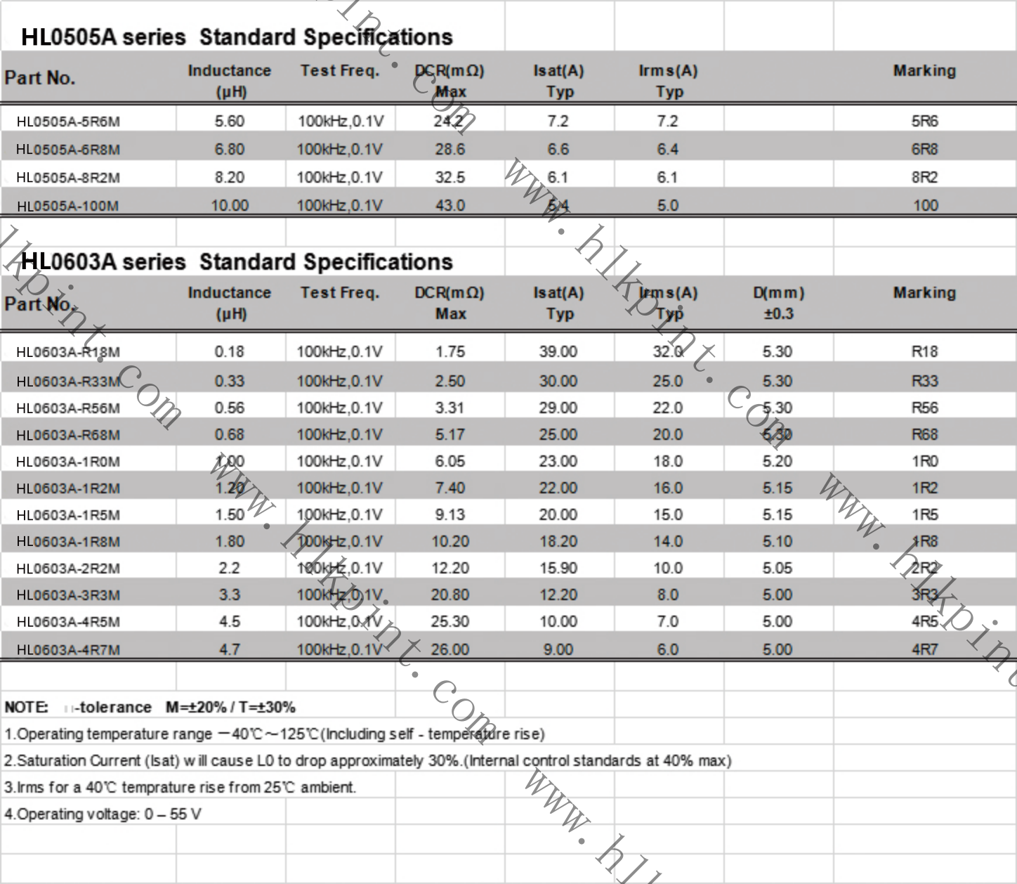 Part No. Series Inductance (μH) Size code Marking Datasheet