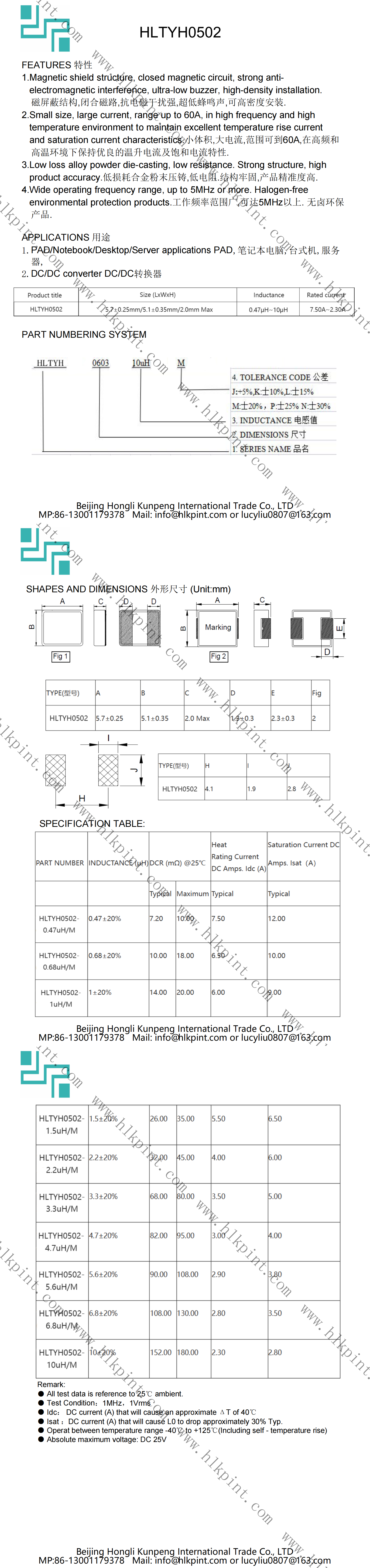 HLTYH0502-4.7uH/M HL0502 4.7±20% 5.7±0.25mm/5.1±0.35mm/2.0mm Max(LxWxH)