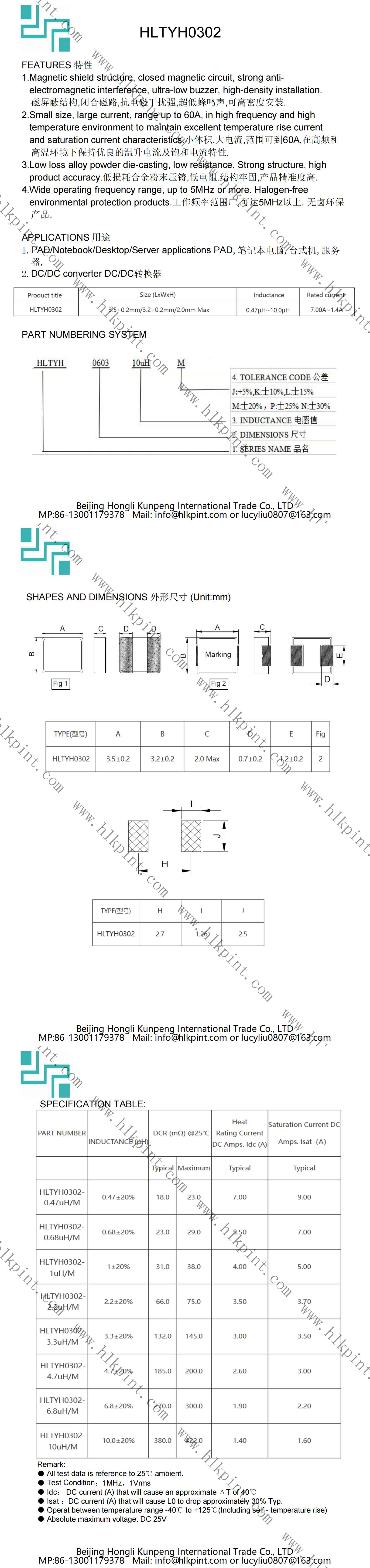 HLTYH0302-4.7uH/M HLTYH0302-4.7uH/M HL0302 3.5±0.2mm/3.2±0.2mm/2.0mm Max(LxWxH)