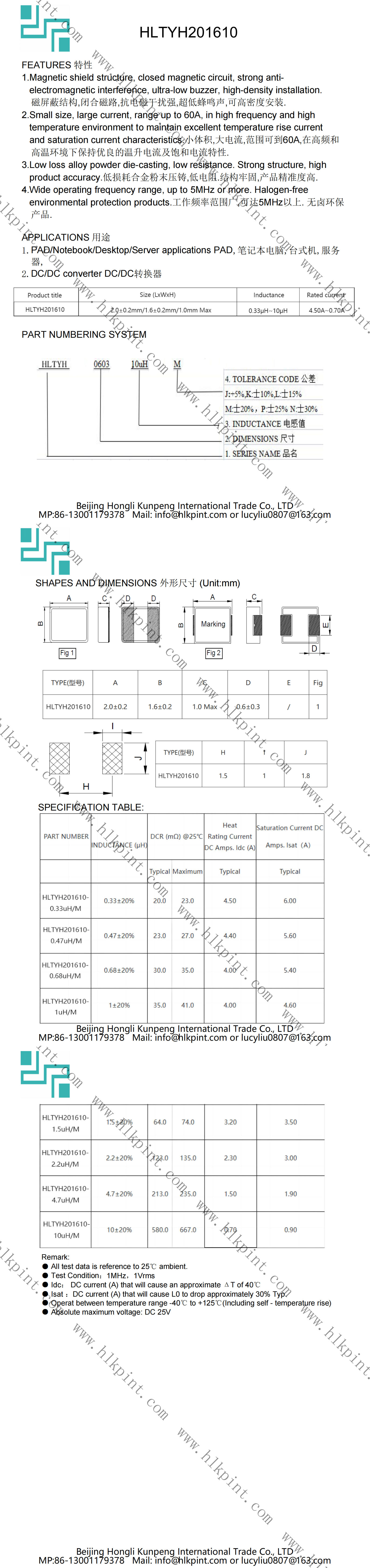 HLTYH201610-0.33uH/M HLTYH201610-0.33uH/M HL201610 2.0±0.2mm/1.6±0.2mm/1.0mm Max(LxWxH)