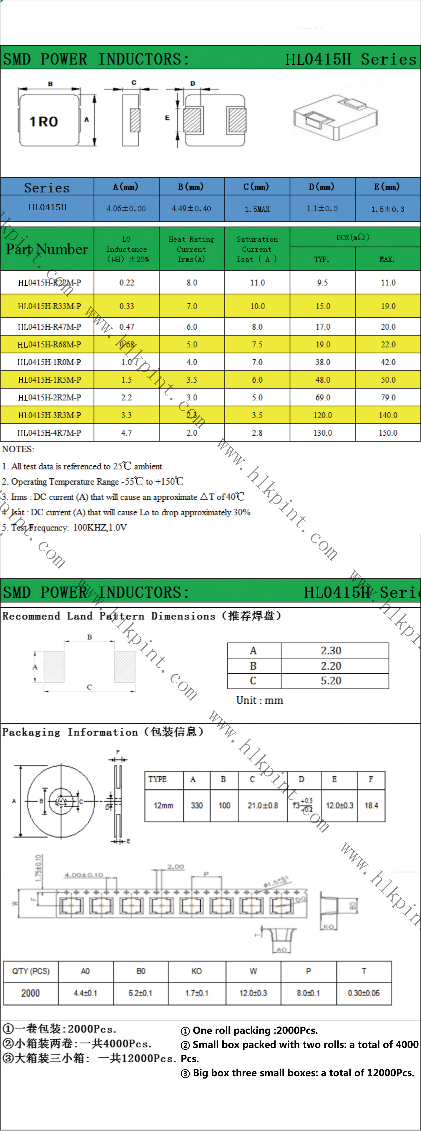 HL0415H-1R5M-P HL0415H-1R5M-P HL0415H(4515) 4.5*1.5