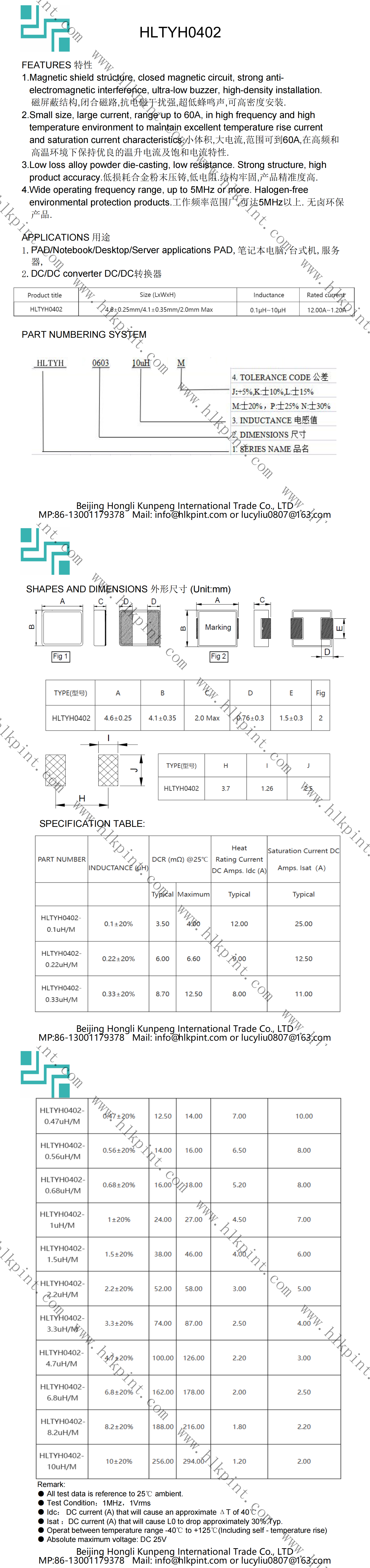 HLTYH0402-4.7uH/M HLTYH0402-4.7uH/M HL0402 4.6±0.25mm/4.1±0.35mm/2.0mm Max(LxWxH)